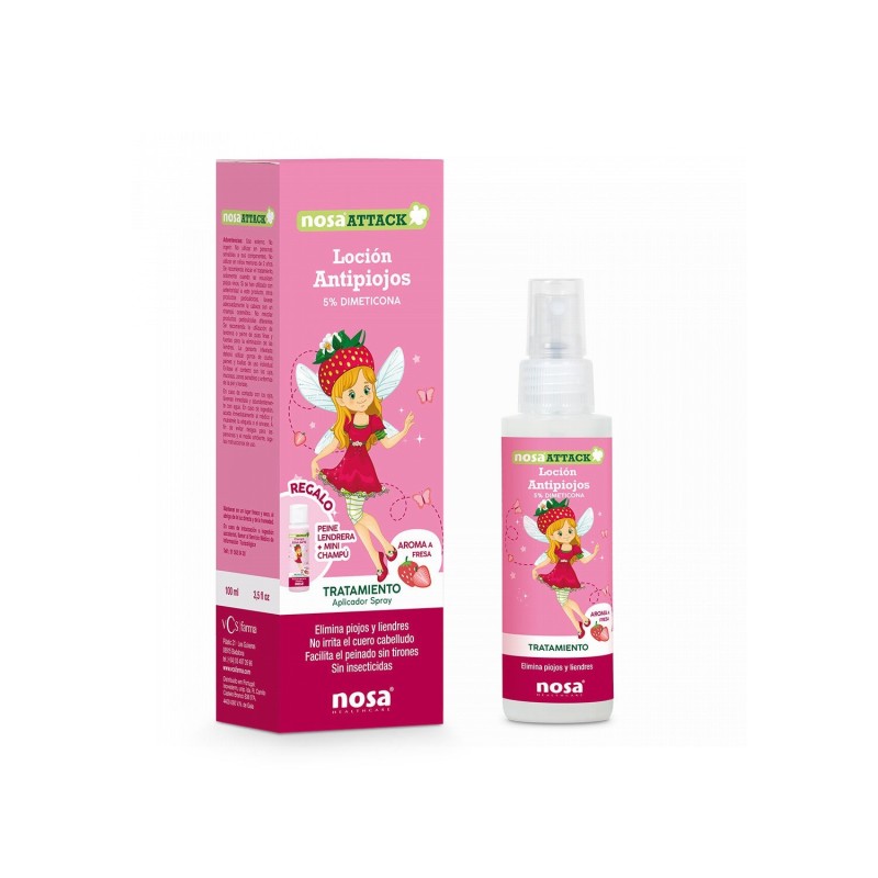 Nosa Attack Loción Antipiojos 5% Dimeticona Aroma Fresa 100ml