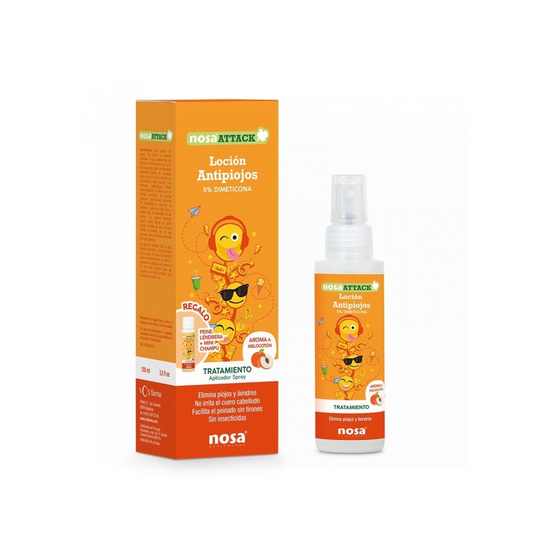 Nosa Attack Loción Antipiojos 5% Dimeticona Aroma Melocotón 100ml